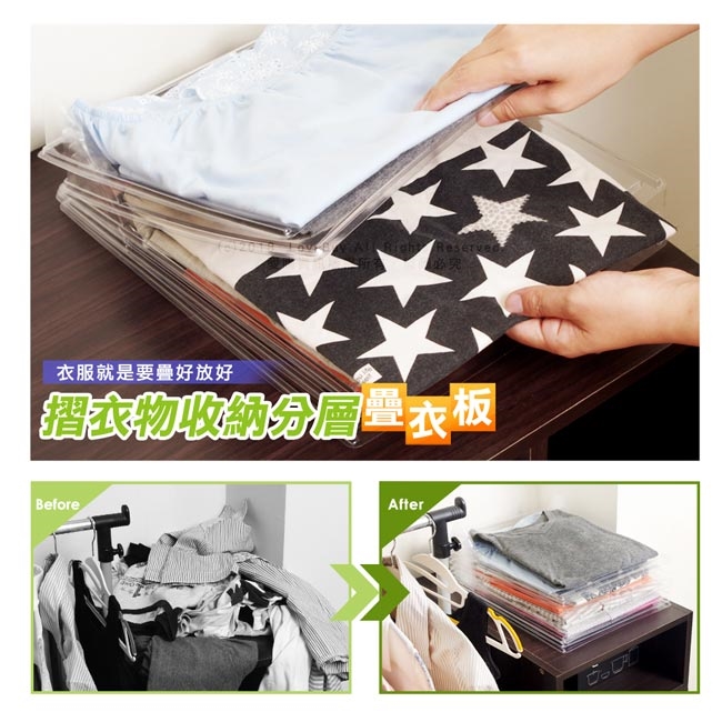 折好的衣服最怕疊太高就倒掉、抽一件就亂掉! 不管衣服多或少~使用疊衣板就可以讓衣服整整齊齊地排好! 旅行收納、衣服疊放都難不倒~