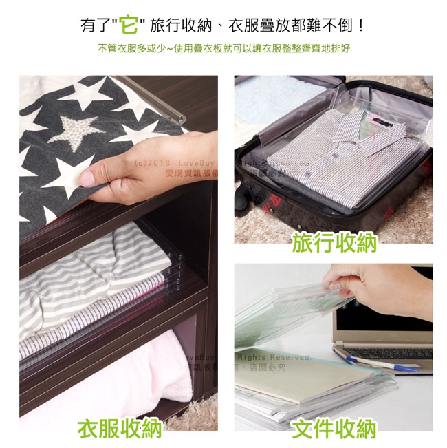透明PET材質 加厚質料強度高 出國衣物好整齊 種類 折衣板數量 30入材質 PET透明環保材質尺寸 29x34x5cm 5 單品 產地 台灣 售價:890